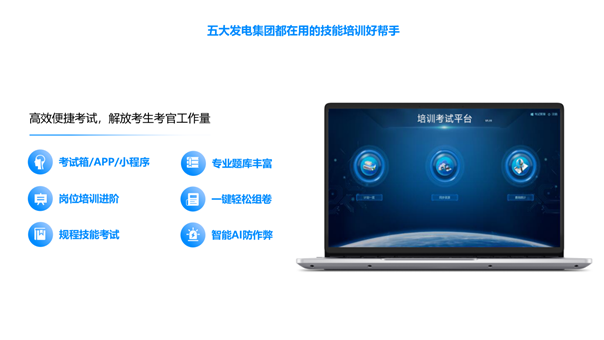 培训考试开云官方注册由考试箱和培训考试系统组成,在现场培训考试场景下,利用考试箱自带投影仪、答题器,无需专用场地,只需一面墙即可完成培训及考试,有效解决考试人员多、专用场地不足的问题;在远程培训考试场景下,利用开云官方注册内置多种作弊识别算法,自动识别挂机、替考、切屏等违规行为。开云官方注册内置电力行业课件与题库,支持小程序、APP、PC多端接入。