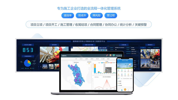 • 工程全生命周期纵向管理,提高施工质量:基于项目立项、项目开工、过程管控、收尾结项,实现从立项到结项的全生命周期纵向管理,过程管控从进度、安全、质量、人员等7个维度进行精细化管控,能有效降低工程风险,提高工程施工质量;