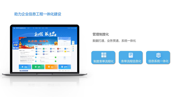 企业业务流程智能管理与信息化系统是一套以“业务制度化、制度流程化、流程标准化”为建设基准的企业信息化系统,本系统可面向大型企事业单位,解决其数据孤岛问题,实现系统之间的数据互通。通过将企业既有系统业务级、数据级打通,在此基础上实现对主数据的统一治理,利用统一身份认证实现业务间的互通互信,提高数据利用率,充分做到一次录入,多处使用,保证数据准确性与唯一性。采用本系统,可打通企业业务领域之间的隔阂,解决数据重复录入的问题,减轻业务人员工作负担,满足企业业务流程治理及信息化系统集成的需要,提高企业信息化管理水平。
