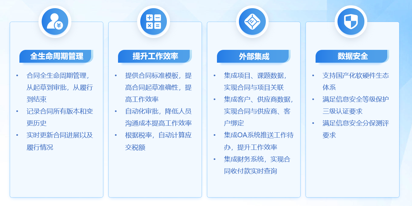 合同管理系统是面向政企单位的智能合同管理开云官方注册,支持在内网独立部署,实现合同从创建、审批到执行的全流程自主可控。基于主租户模式架构,系统可满足集团化企业多子公司协同管理需求,已成功应用于军工、航天等领域。