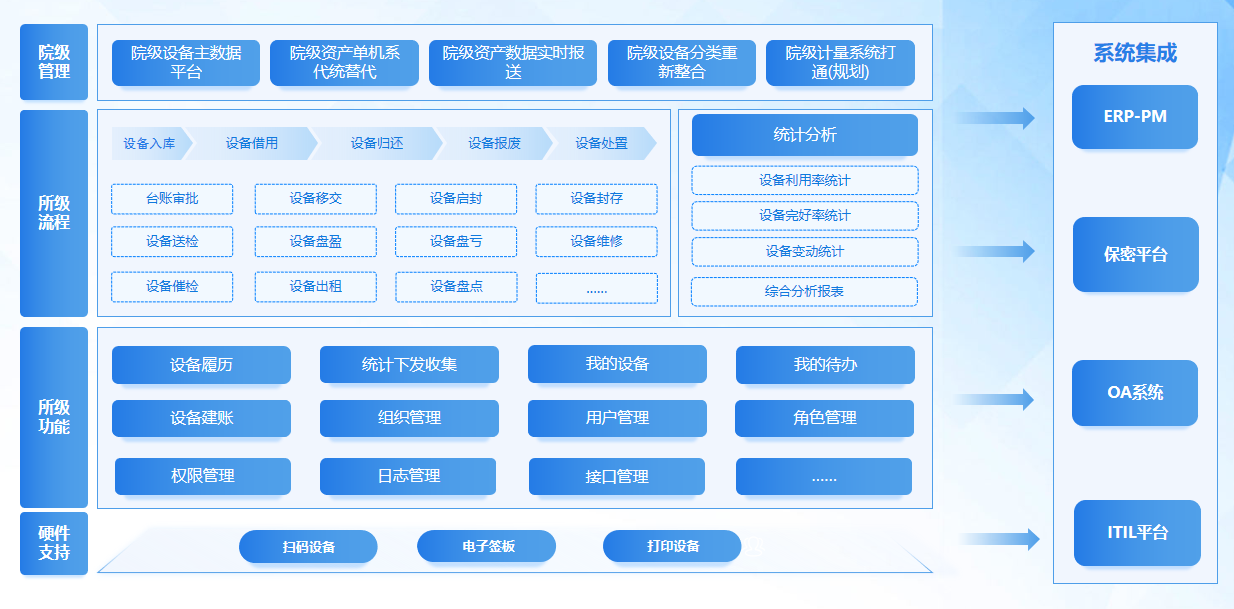 设备资产管理系统是一款对企业内部各类设备进行全面、系统管理的产品,解决了固定资产管理中账、卡、物不符,资产不明设备不清,闲置浪费、虚增资产和资产流失问题,为固定资产管理工作提供全方位、可靠、高效的动态数据与决策依据,实现固定资产管理工作的信息化、规范化与标准化管理,全面提升企业固定资产管理工作的工作效率与管理水平。