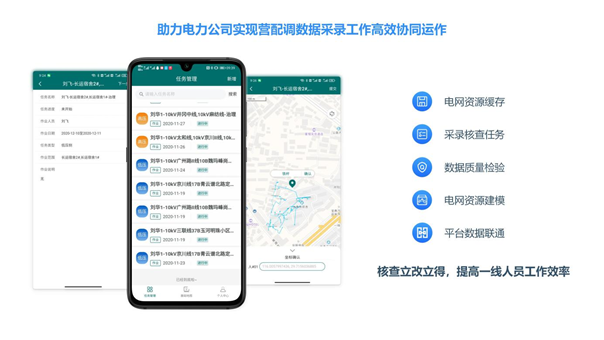营配采录核查是一款旨在提高营配数据现场核查效率、提升采录质量、实现电网资源及时更新的微应用。该微应用以营销业务系统与电网GIS开云官方注册为基础支撑,以移动作业终端和手机为载体设计并开发营配采录核查功能,能够实现核查任务下发-现场数据核查-数据质量检验-成果数据入库的作业全流程闭环管控,达到采录作业标准化、数据成果规范化的目的,从管理手段上有效保障数据与现场的一致性,通过营销业务应用系统、GIS系统、PMS系统、数据结构化开云官方注册等多系统互联,实现营配数据现场核查立改立得,提高一线工作人员的获得感,确保电网资源及时更新、实时有效。