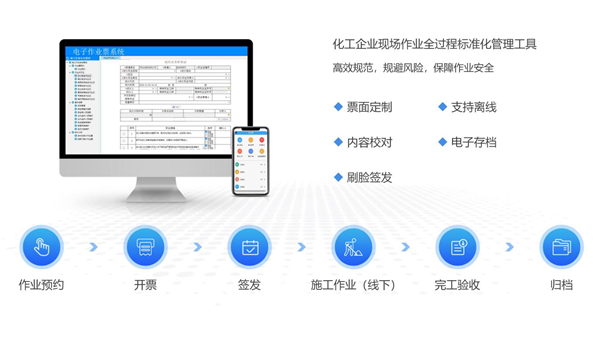 化工行业电子作业票系统是一款依据《化学品生产单位特殊作业安全规范》而建设的系统,覆盖动火、受限空间、盲板抽堵、高处、吊装、临时用电、动土、断路等八大作业。系统包括承包商管理、项目管理、作业预约、票证管理、JSA分析等功能,可以帮助企业更好的规范施工作业安全管控工作,降低或规避作业过程中潜在的风险,更好的保障作业人员的安全。