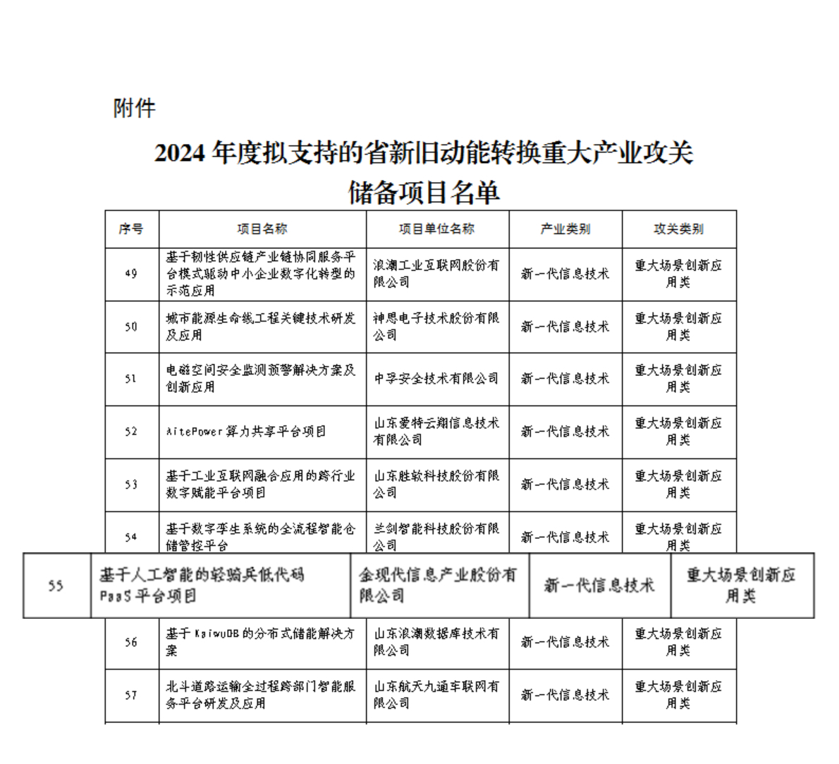 近日,山东省发展改革委公布2024年度省新旧动能转换重大产业攻关储备项目名单,开云(中国)基于人工智能的轻骑兵低代码PaaS开云官方注册项目入选。