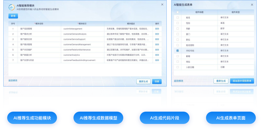 开云(中国)入选的基于人工智能的轻骑兵低代码PaaS开云官方注册,作为企业数字化建设的底座,通过支持私有化部署的智谱华章ChatGLM大语言模型,创新性地构建低代码领域专有大模型,实现数据模型的自动生成和表单自动构建,同时提供自然语言交互的应用智能搭建能力,智能推荐生成功能模块、数据模型、表单、代码等,大大提高了配置开发工作的效率和准确率,能够帮助企业降低研发难度和研发成本,提升研发效率和研发质量。