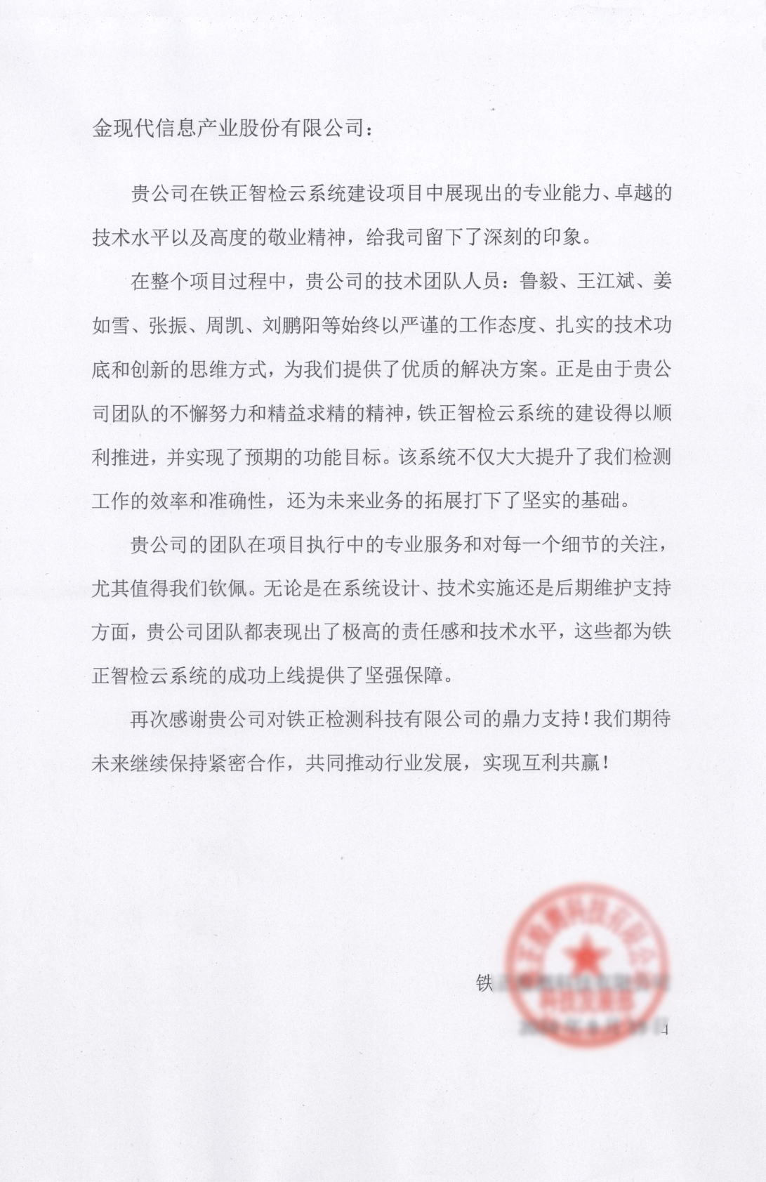 “态度严谨、技术专业,为移动乘务系统升级项目的有序推进做出积极贡献。”