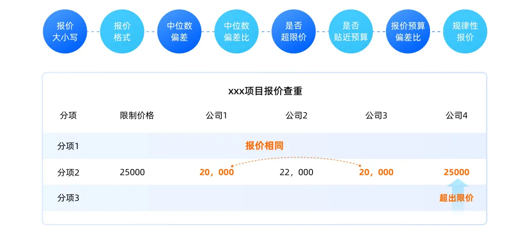深入分析各供应商提供的报价,识别是否存在完全相同的报价情况,或者检查报价之间是否存在特定的比例关系,以评估报价的相似度与合理性。