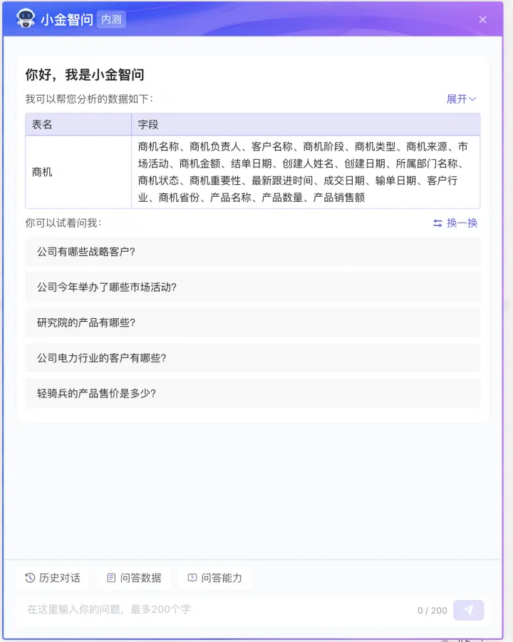 Q:销售总监在一季度述职时需要了解季度销售额,并预测全年业绩,如何不用筛选汇总,就能快速获取相关数据?A:基于大模型,销售总监只需用自然语言向CRM提问:“一季度各产品的销售额是多少?”系统即可实时分析数据,生成可视化图表及归因报告,同步预测未来3个月业绩风险点。价值:决策响应速度提升80%,目标制定精准度提高35%。