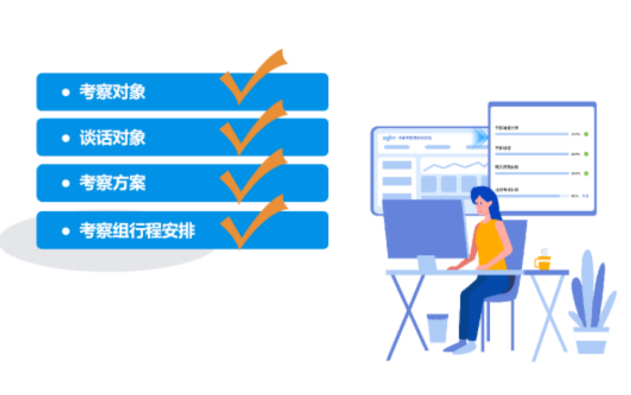 系统支持对考察机构、考察组成员、考察方案、谈话提纲、谈话人等信息的灵活配置,通过简单的“点一点、选一选”,即可完成考察组成员分配、考察行程安排等设置,可帮助组织部快速制定考察方案。在考察方案中,系统可以动态配置谈话提纲和谈话人权重占比,让组织部后续开展考察工作“拿来即用”。
