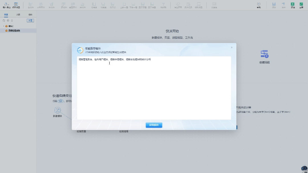 模块智能生成:自动生成常用业务模块,如用户管理、订单处理等,简化开发流程。