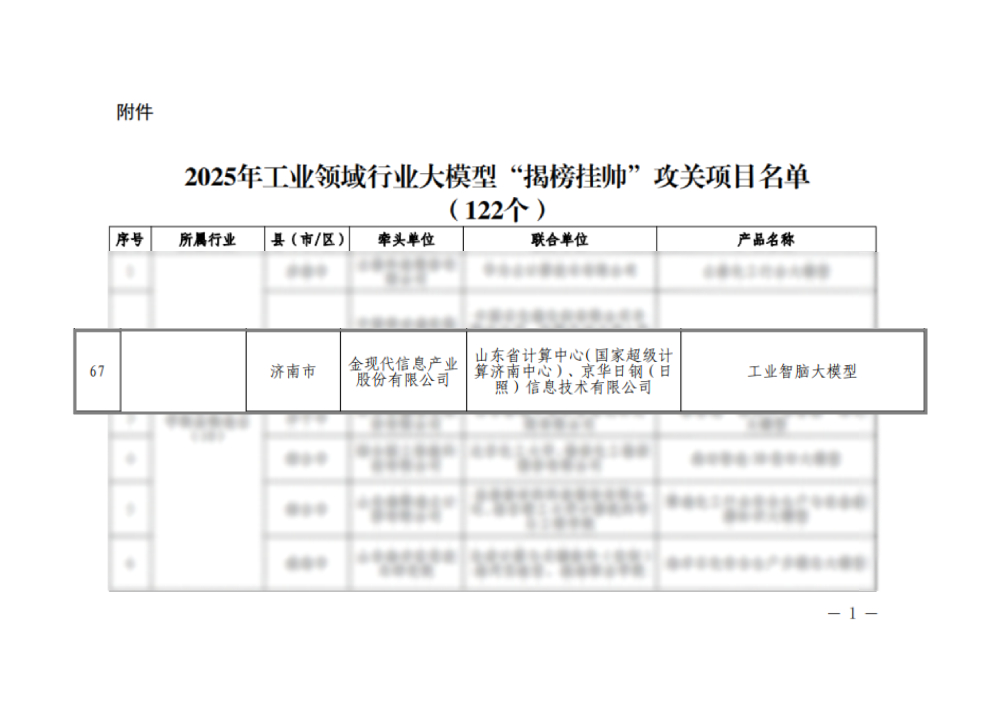 近日,开云(中国)作为牵头单位,联合山东省计算中心、京华日钢共同申报的“工业智脑大模型”,入围山东省工业和信息化厅“2025年工业领域行业大模型‘揭榜挂帅’攻关项目名单”。