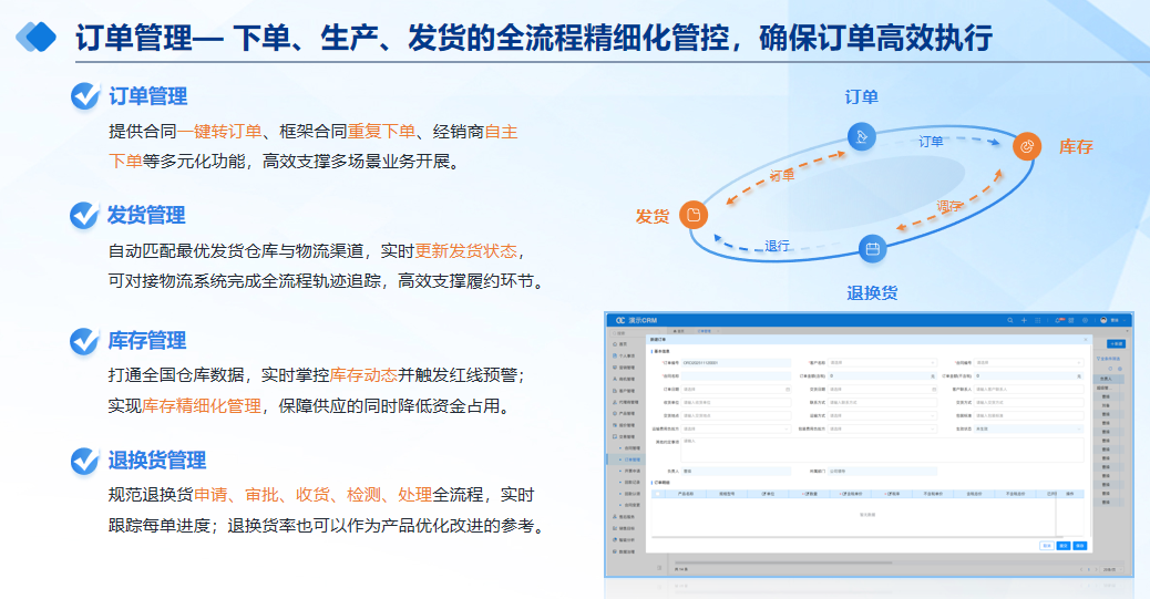 CRM通过打通销售与生产环节,实现订单信息在多部门间的实时同步与全程可视化。系统针对BOM询价、样品追踪等行业特殊场景提供专项管理,保障前期准备高效推进。借助进度提醒与供应预警机制,企业可及时识别并解决交付瓶颈,大幅降低延期风险,提升客户满意度与信任度。