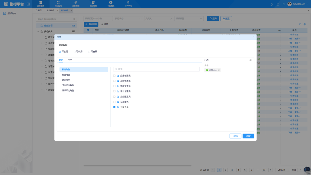 轻量化流程降低使用门槛:采用 “分级授权 + 自主配置” 模式,基础指标由研发人员直接定义,派生指标和组织指标可由业务人员自主配置;修改计算公式、统计维度时,业务人员可独立完成,无需 IT 部门介入开发。
